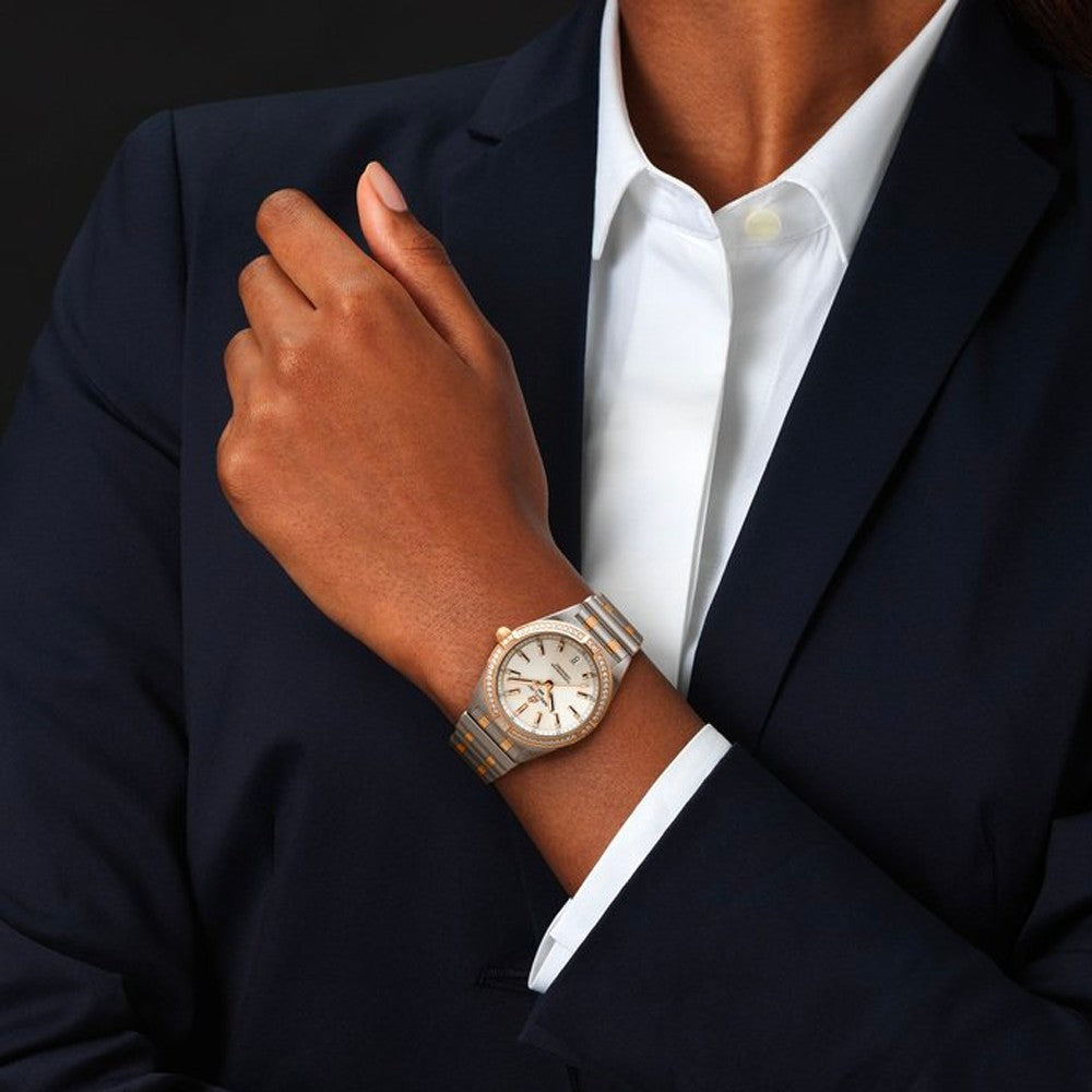 Stylish yet elegant, the modern-retro inspired Chronomat 32 is the versatile sporty and chic watch for any occasion. It is available in an array of metal cases, from cool stainless steel, to goes-with-everything bicolor, or even luxurious 18k red gold. Women craving extra sparkle will also be able to opt for diamond-set bezels, indices, and colorful dials. Featuring Breitling’s iconic and comfortable “Rouleaux” bracelet with a butterfly clasp, the Chronomat 32 is powered by the Breitling Caliber 77, a COSC-certified SuperQuartz™ chronometer.