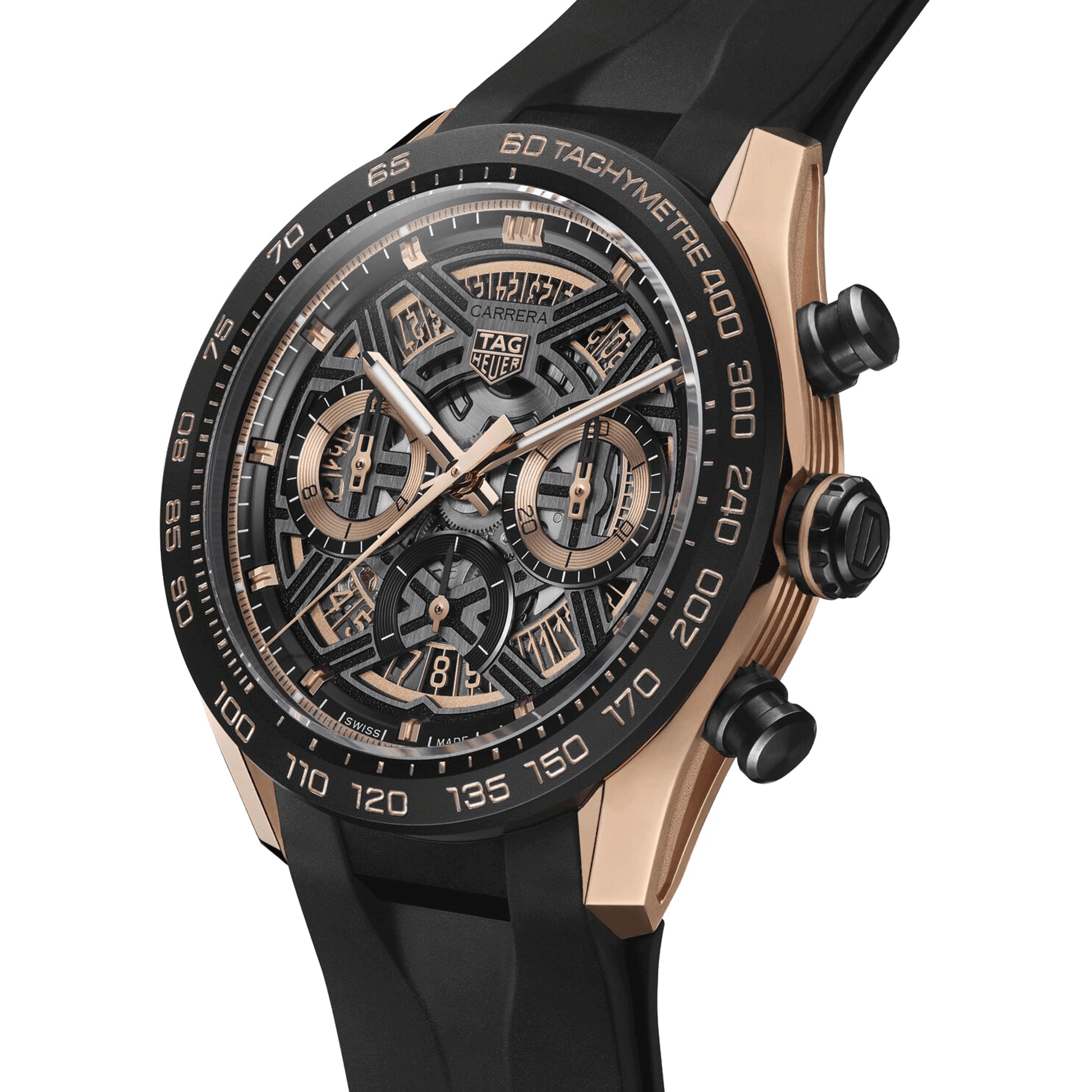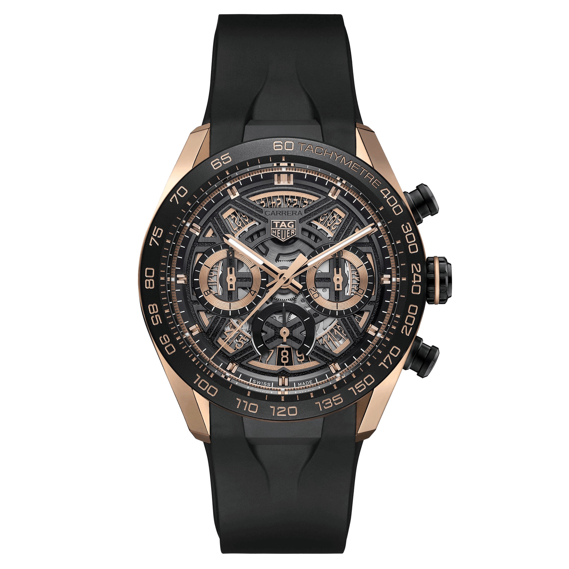 Audacity meets elegance in this one-of-a-kind TAG Heuer Carrera Chronograph. With its skeleton design and rose gold accents, this exhilarating chronograph embodies the spirit of motorsport and luxury combined—a timepiece for those who dare to stand out.